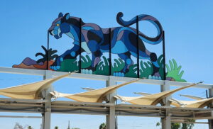 We built and installed the Animalia concept at the Central & Broadway light rail stop in Phoenix, featuring a Puma, a Dragon & Phoenix, and a Rooster. Each animal represents a different cultural heritage—Hispanic, Afro-American, Native-American, Caucasian, and Asian—celebrating the neighborhood’s diversity. The installations symbolize the community’s harmony, where individual identities shine while coming together to tell a shared story.