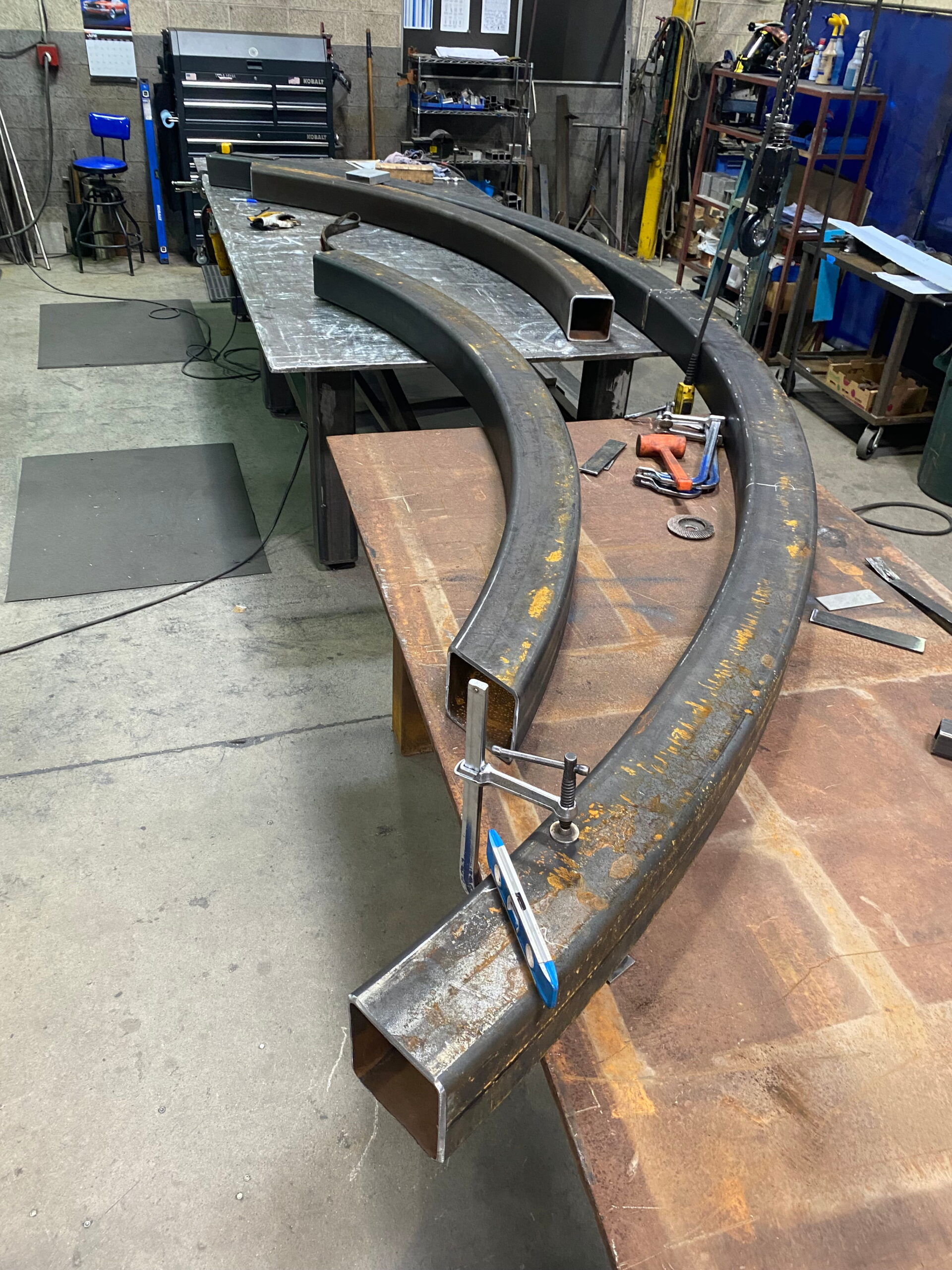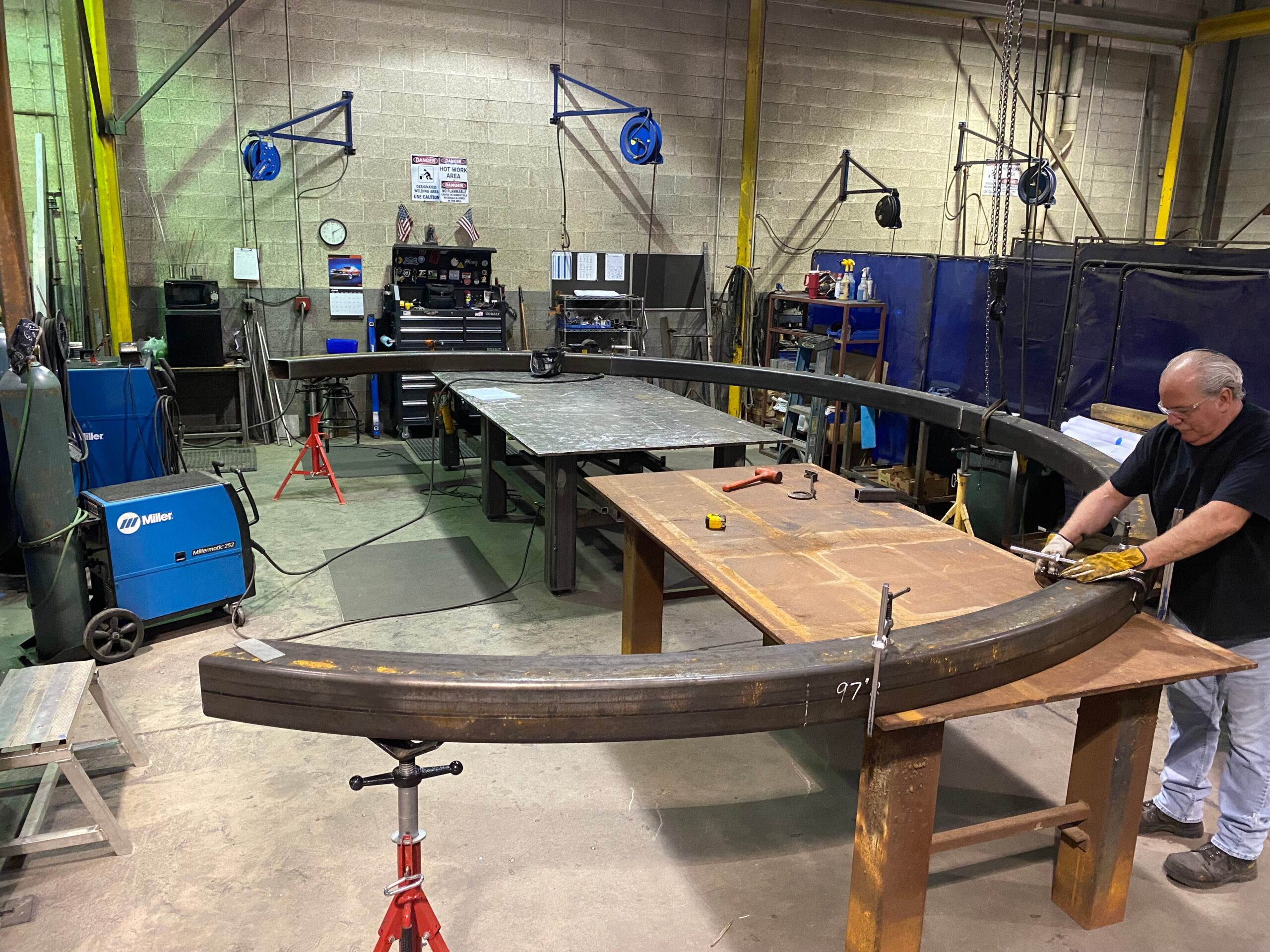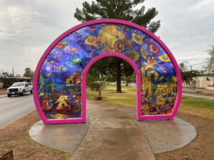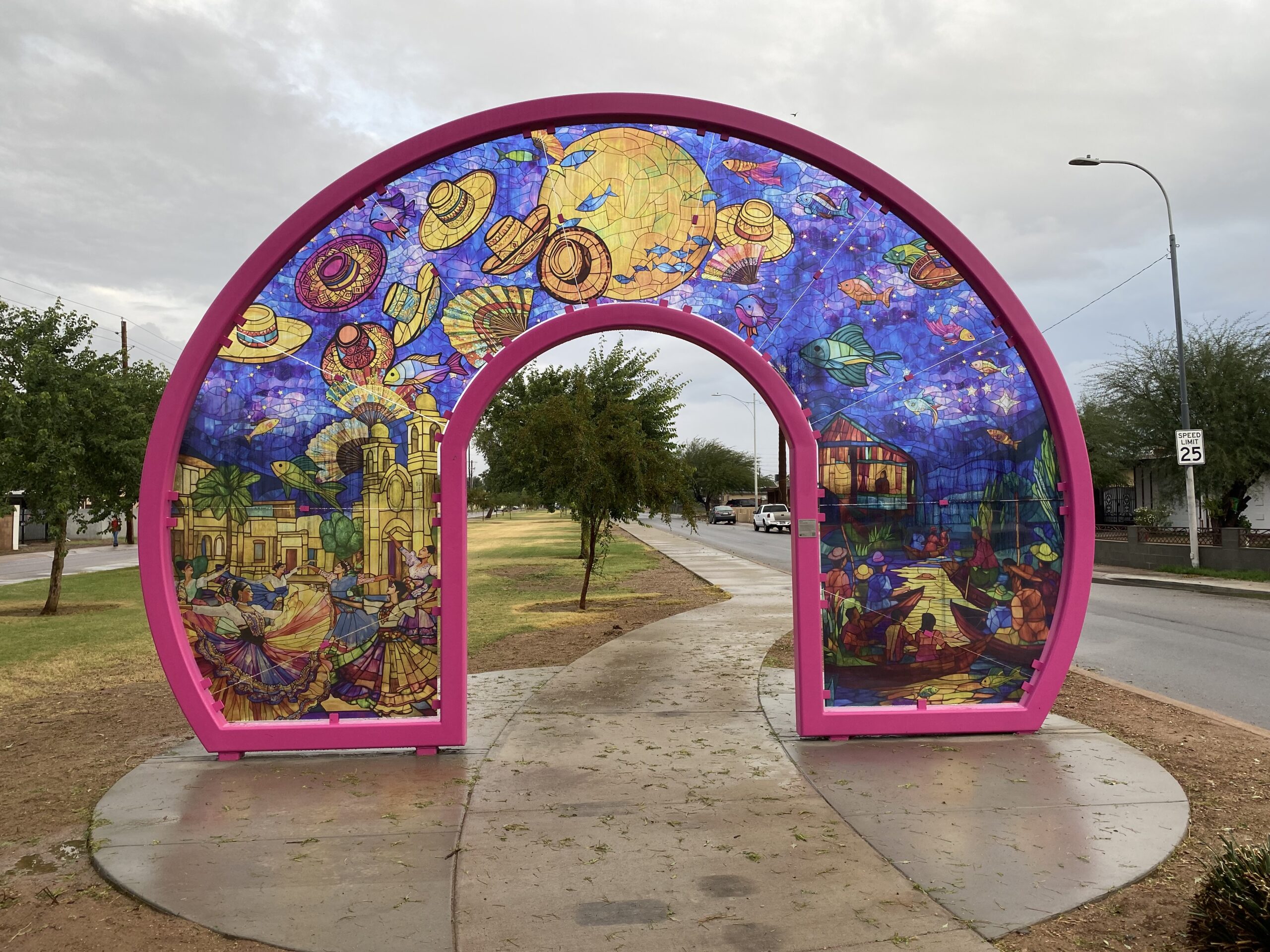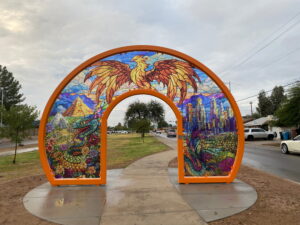A public art installation in Phoenix featuring decorative arches showcased across three intersections for the City of Phoenix. The arches were constructed using roll-formed square tubing, with Magnum engineering a custom clamping solution for the acrylic panels by repurposing and modifying glass guardrail clamps. The assemblies were MIG welded, sandblasted, and finished with primer and paint for long-term durability.