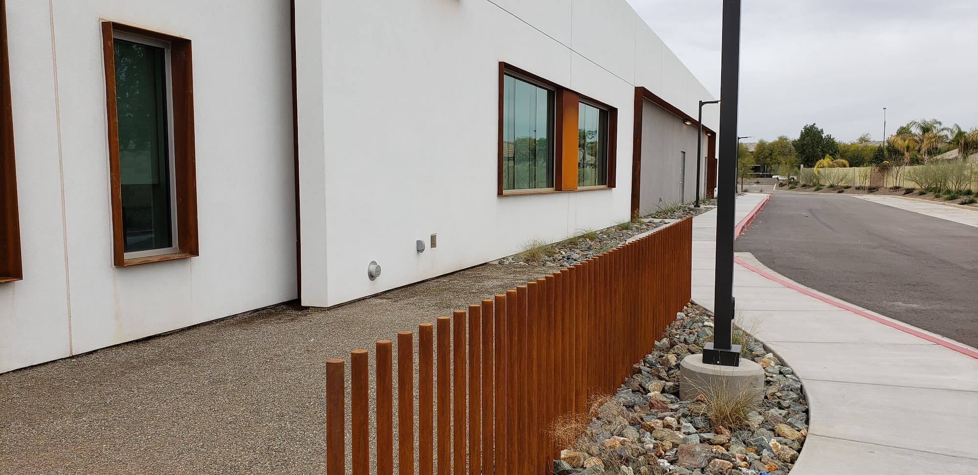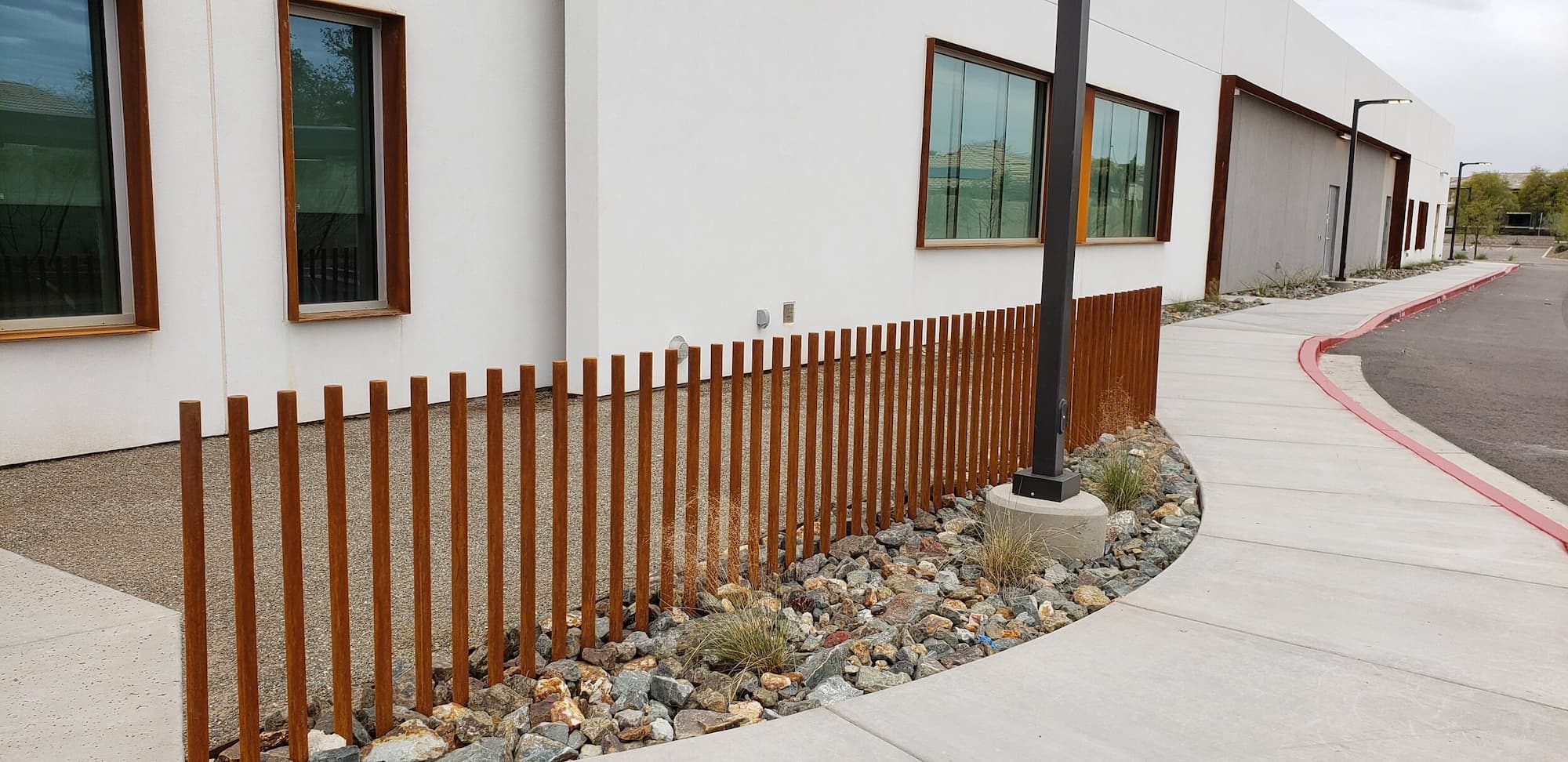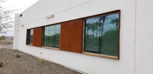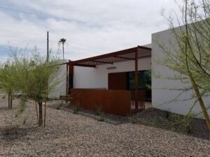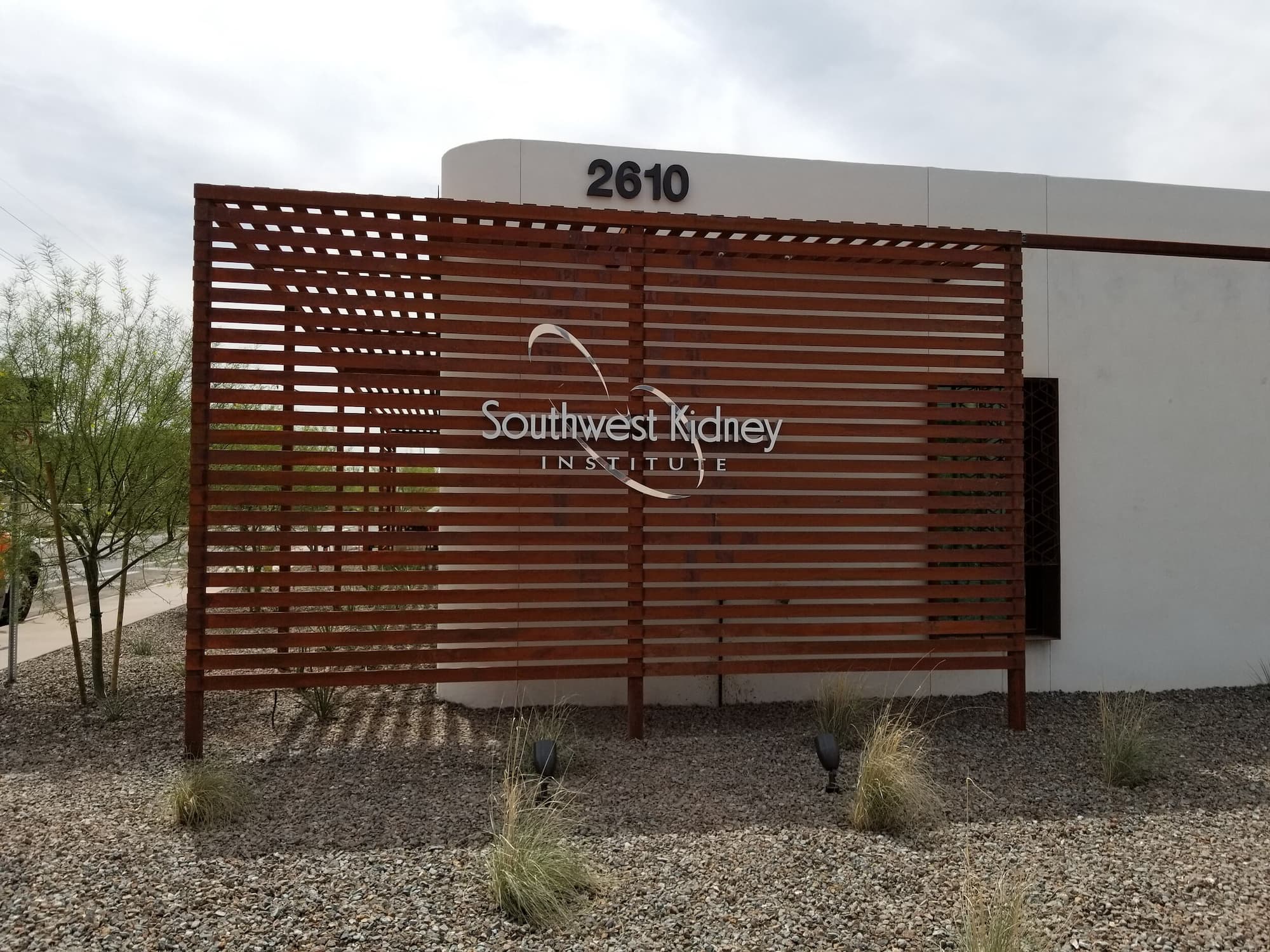 This project included a custom Corten steel pergola, awnings, and complementary Corten architectural accents fabricated for the Southwest Kidney Institute, designed by SmithGroup. The warm, weathered steel elements provide shade, privacy, and visual continuity throughout the site, blending durability with a refined desert-modern aesthetic that enhances the building’s exterior and surrounding landscape.