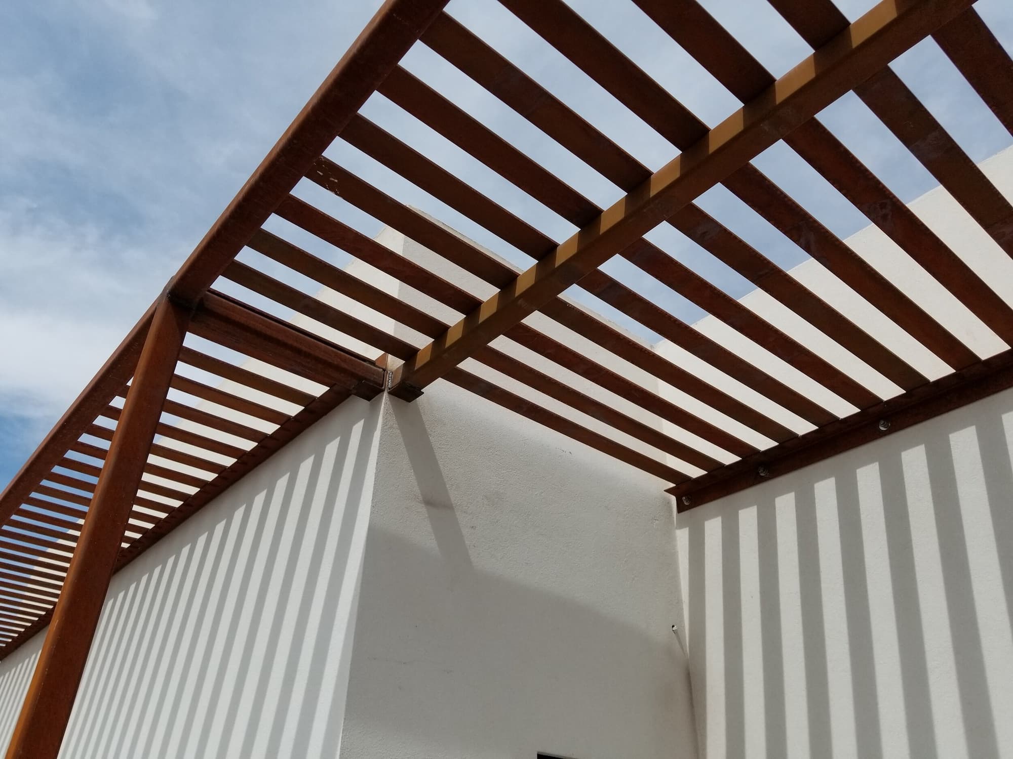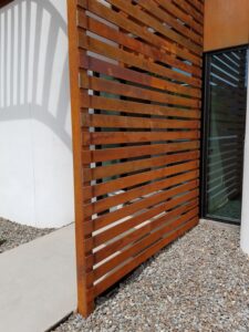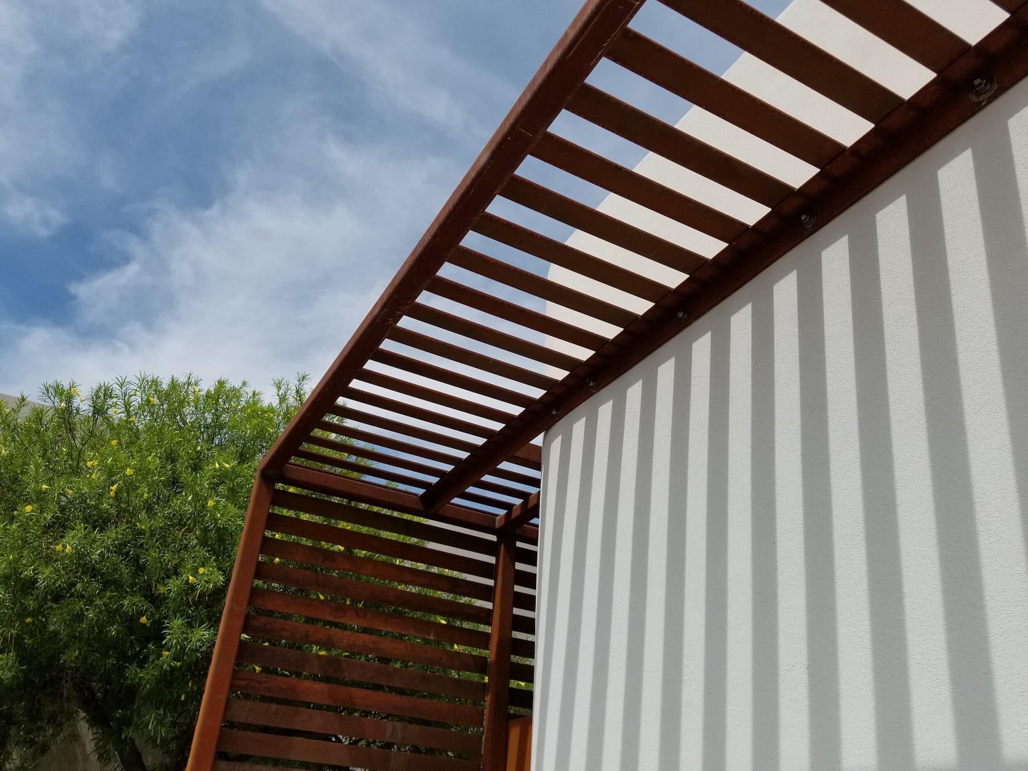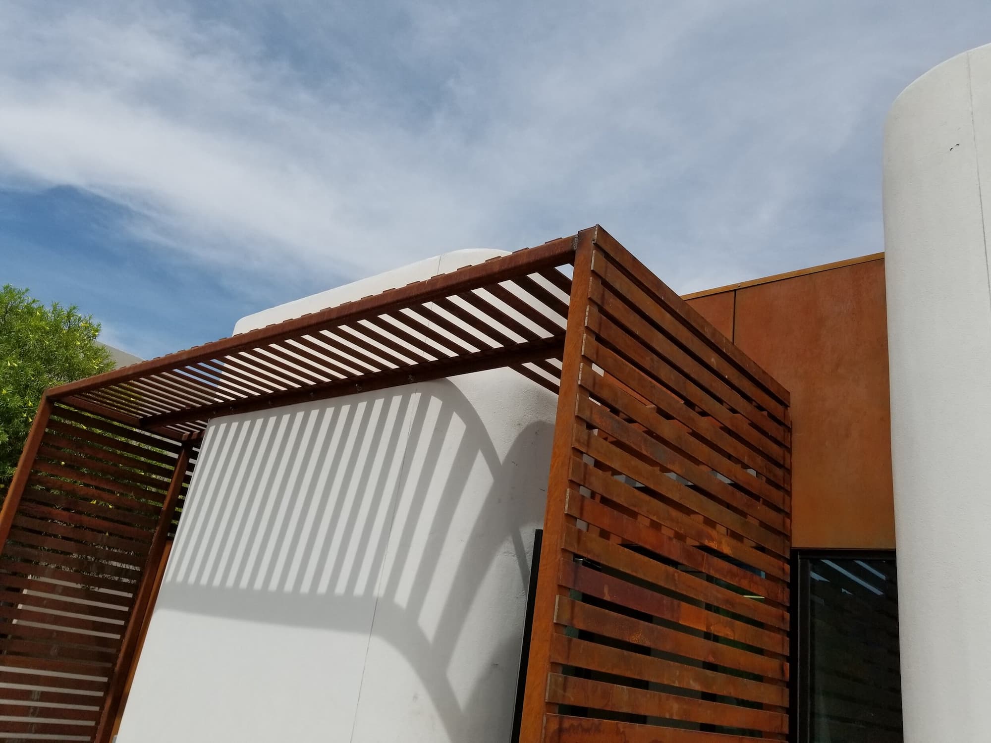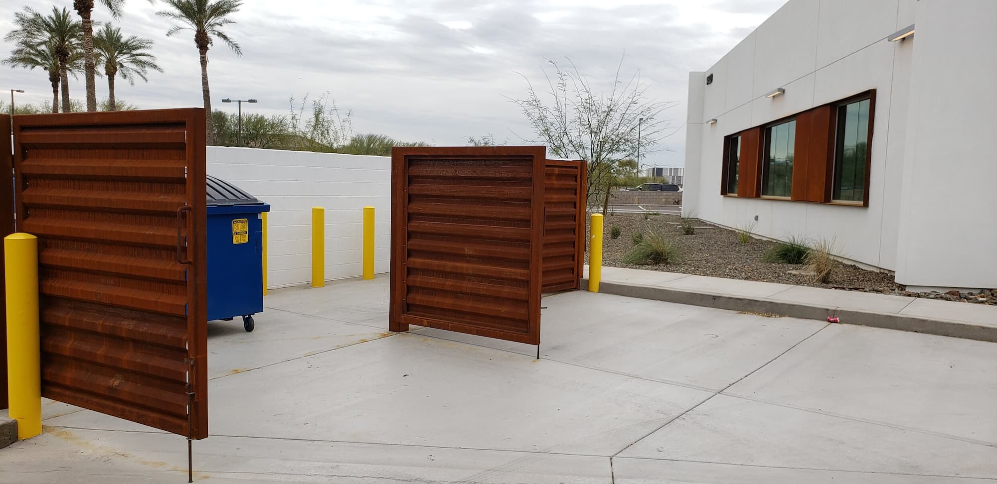 This project included a custom Corten steel pergola, awnings, and complementary Corten architectural accents fabricated for the Southwest Kidney Institute, designed by SmithGroup. The warm, weathered steel elements provide shade, privacy, and visual continuity throughout the site, blending durability with a refined desert-modern aesthetic that enhances the building’s exterior and surrounding landscape.