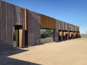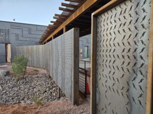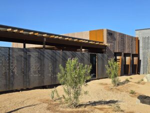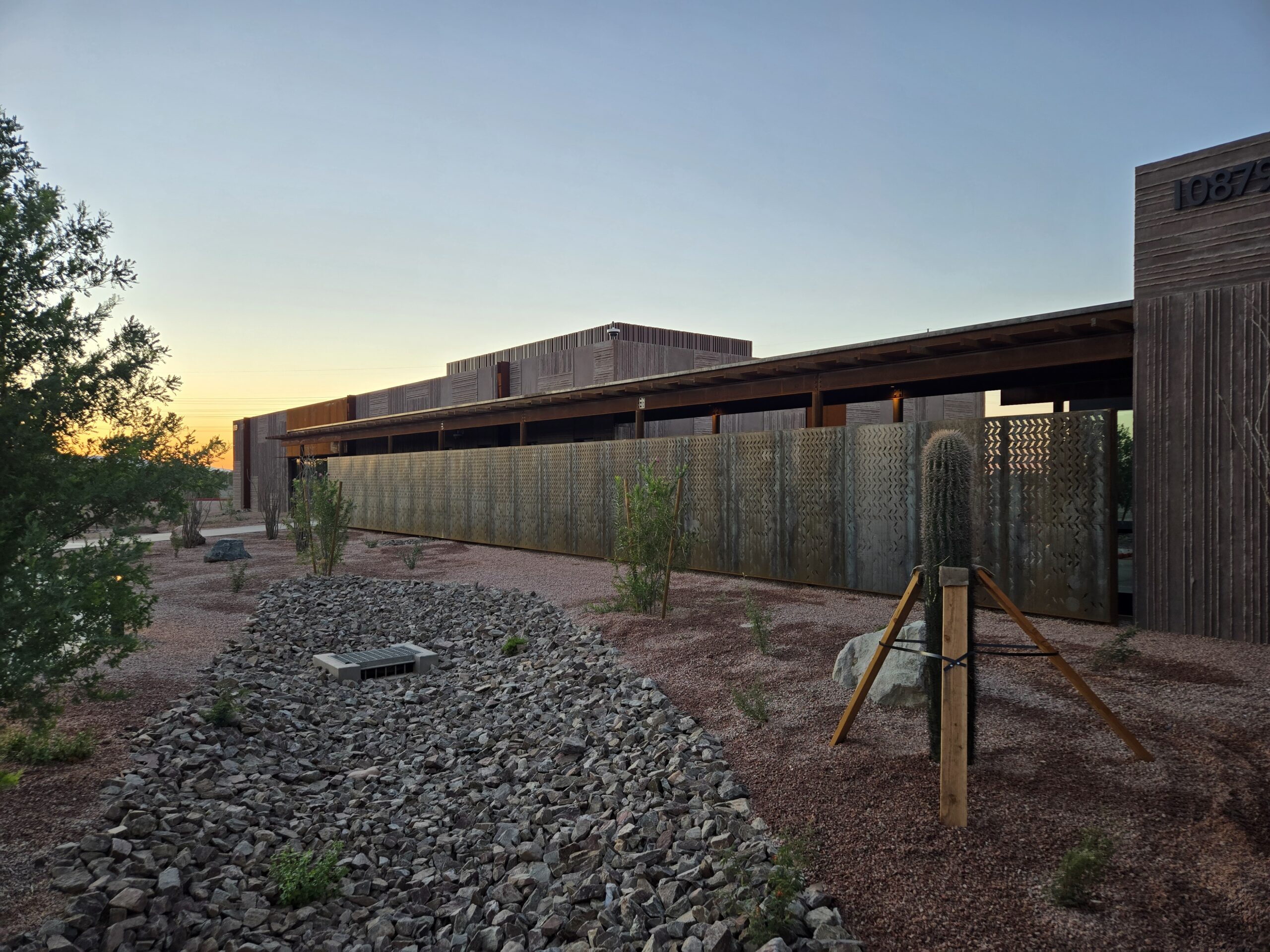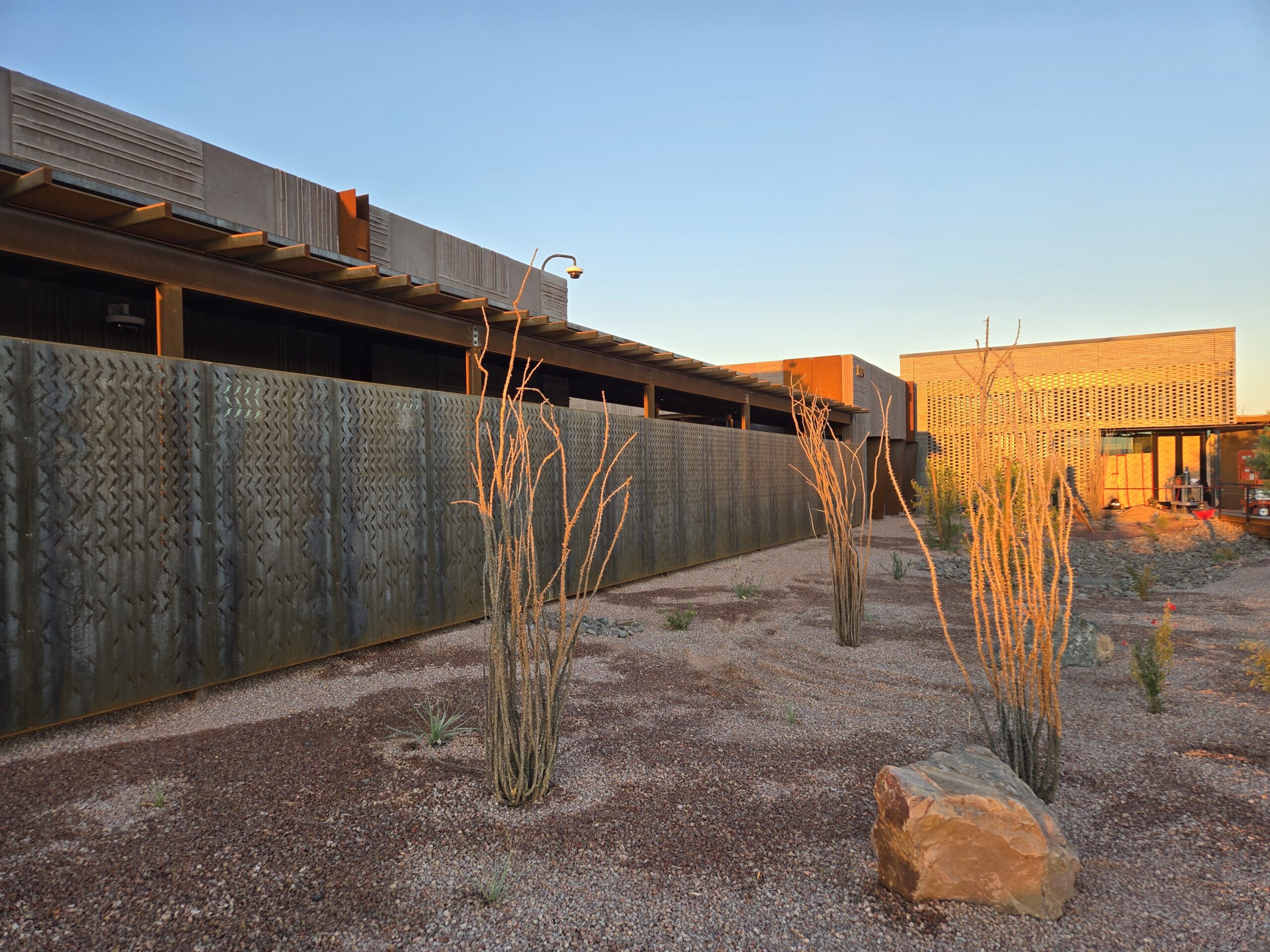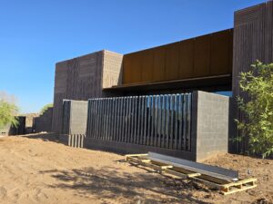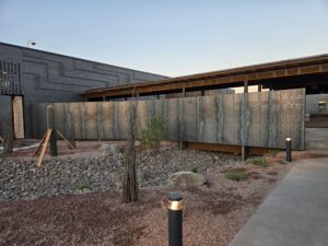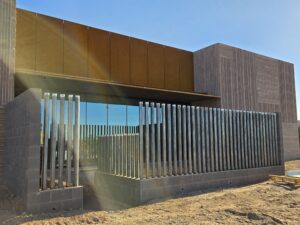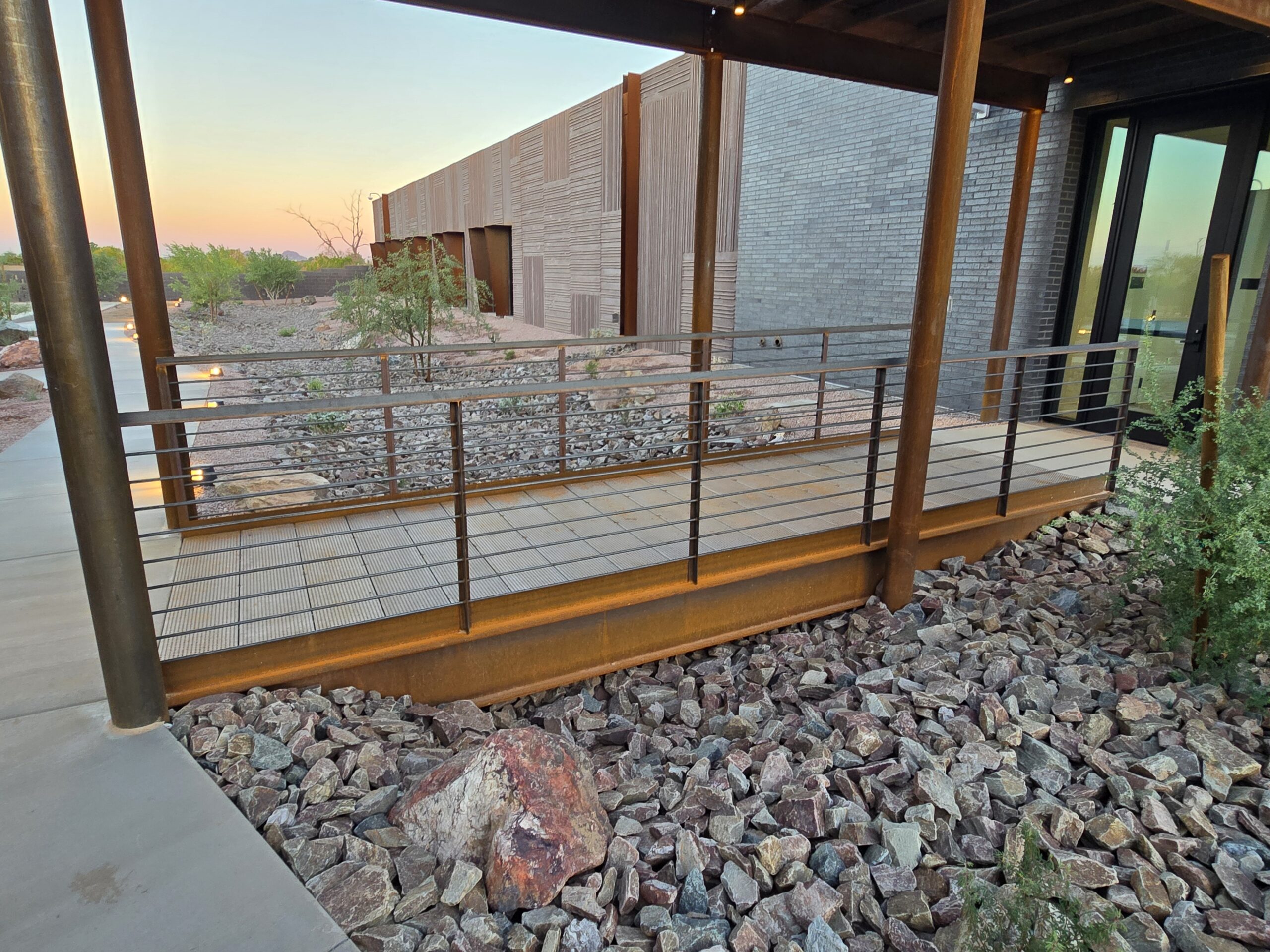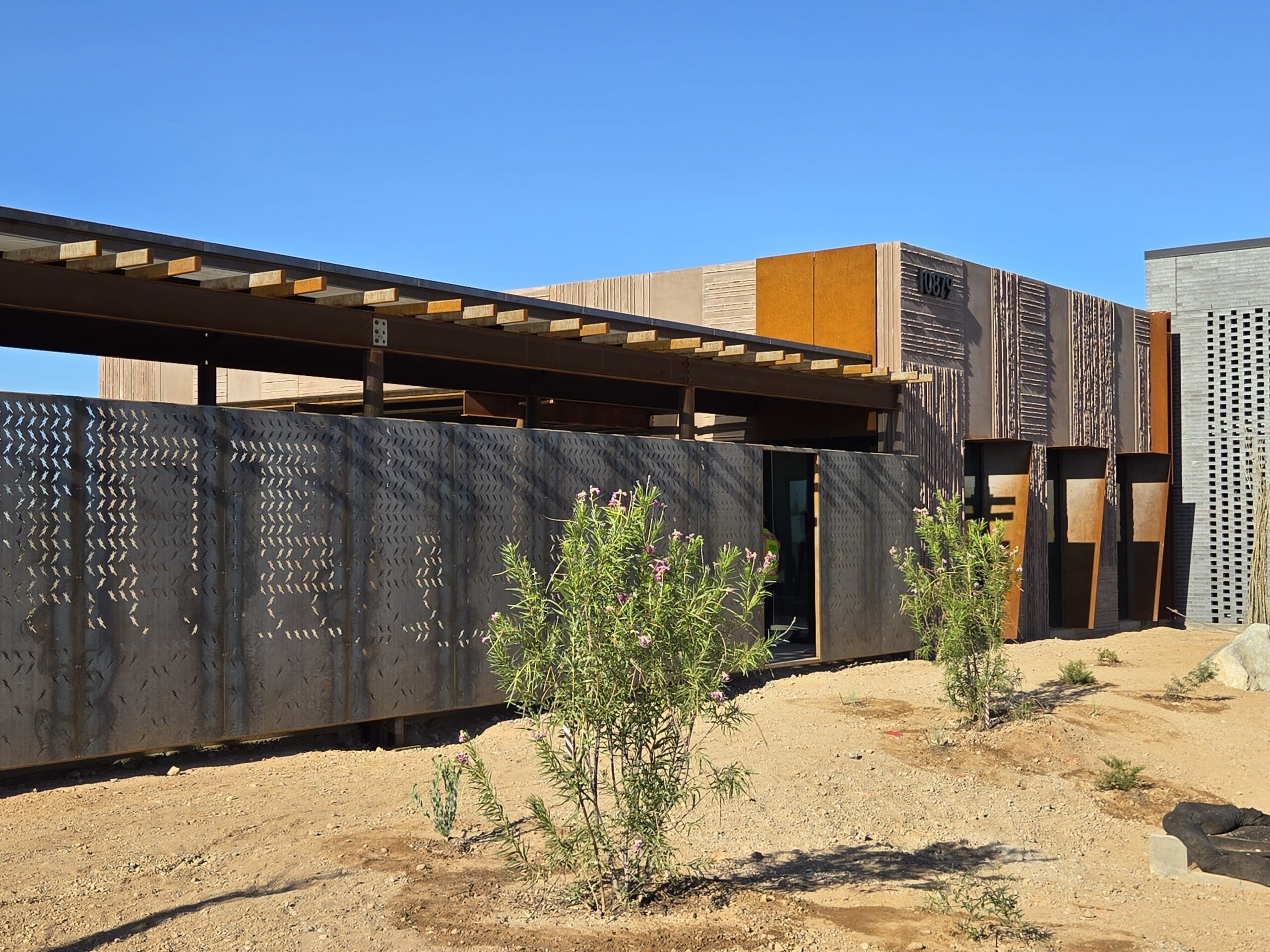 For the Salt River Pima–Maricopa Indian Community’s Journey to Recover Rehabilitation Center, we fabricated and installed a comprehensive suite of custom architectural Corten steel elements, including window shading, privacy screening, gates, pergolas, awnings, and canopies. The work integrated layered 16-ga Corten perforated sheet with 2″ × 4″ Corten rectangular tubing, concealed mechanical raceways with 11-ga Corten lids, and select 14-ga laser-cut privacy panels featuring Native American–inspired bird motifs. The result is a cohesive campus-wide installation that balances durability, shade, function, and cultural expression.