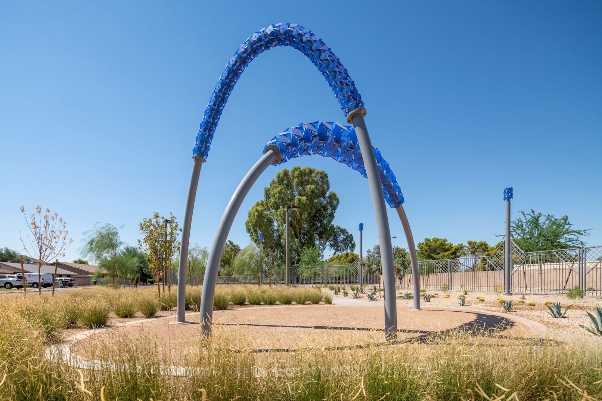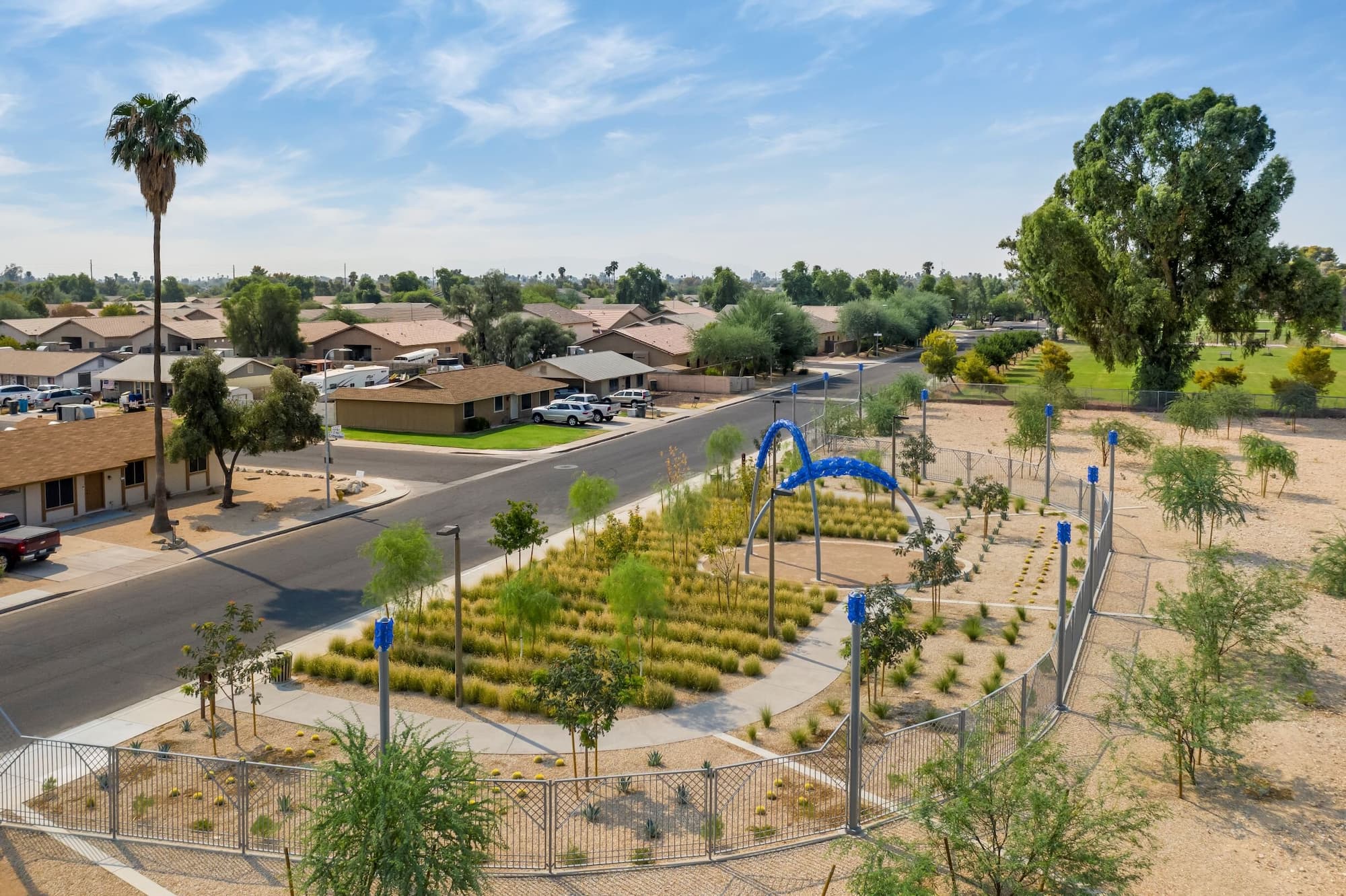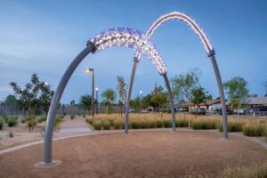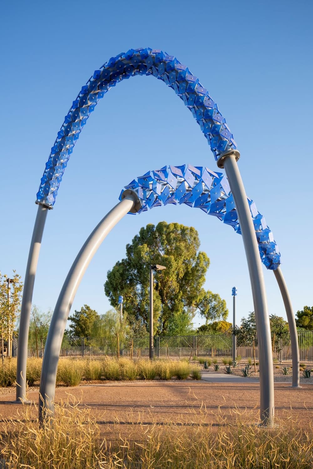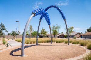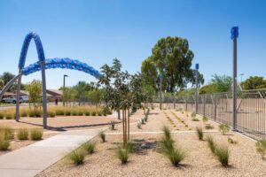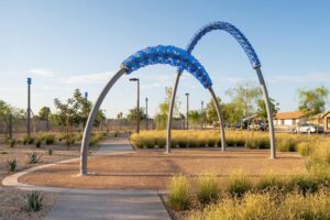 This project features a fully custom-fabricated fencing system designed and built by Magnum Companies for a public park installation. Our team cut all decorative fence panels in-house and performed all welding and fabrication of the fence assemblies, posts, and integrated components to meet the demands of a high-traffic outdoor environment. In addition to the fencing scope, Magnum Companies assisted Dig Studios by installing the sculptural artwork on-site, coordinating placement and integration with the surrounding landscape and fencing layout. The completed installation delivers a durable, visually cohesive perimeter that complements the public art while providing long-term performance and clean architectural detailing.